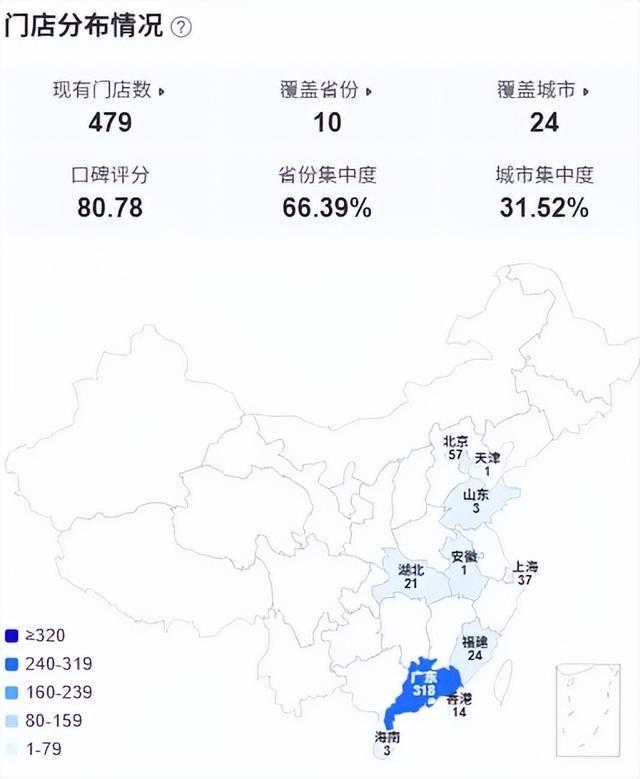 并且遇见小面地区分布极不均衡,据窄门餐眼,遇见小面在广州门店有318家,占全部门店的66.4%。显然,遇见小面也还未能形成全国性的区域布局网络。