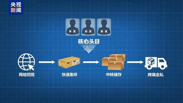 犯罪团伙是如何招揽客户,是如何将血样走私出境的呢?侦查中专案组发现,走私团伙的揽客和运输手法十分隐蔽,形成“网络招揽-快递集样-中转储存-跨境走私”的完整黑色产业链。