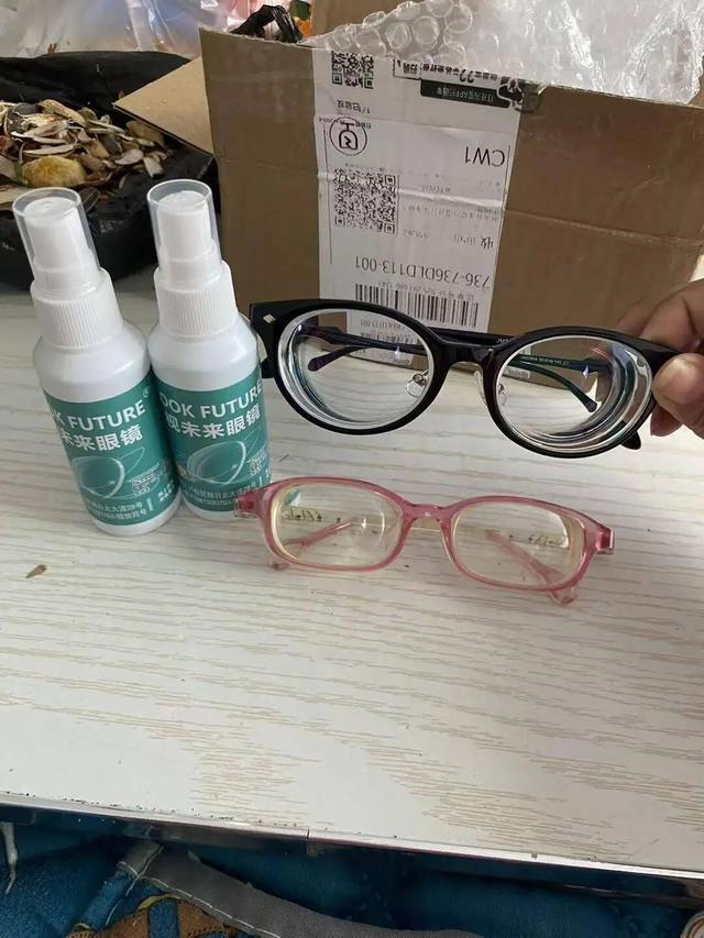 黑色眼镜是陈一仟为刘女士定制的,粉色眼镜是旧眼镜