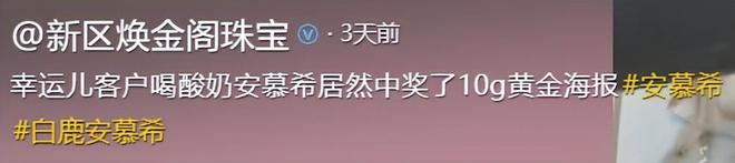 近日,江苏南京一男子购买酸奶意外抽中“黄金海报”,这款海报印有代言人白鹿的形象,上面还标注“999足金10g”字样。