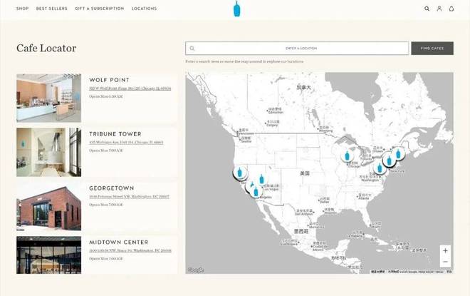 但无论是蓝瓶咖啡还是 % Arabica,二者目前在华布局都处在初期阶段。蓝瓶咖啡目前只在上海、深圳开出 14 家门店,% Arabica 稍多,但也仅在中国大陆开出 84 家门店。按照星巴克的门店覆盖密度来看,二者在中国市场都还有进一步增长空间。