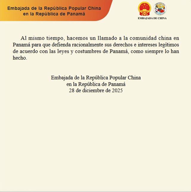 我们同时呼吁广大巴拿马华人依据巴法律规定和文化风俗,理性捍卫自身合法合理权益。