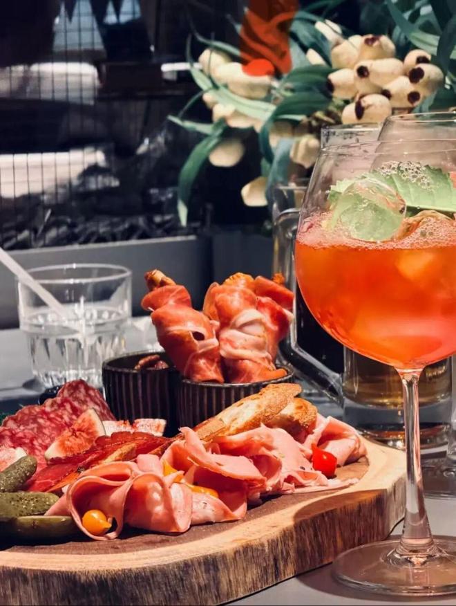 具体来看,搭配酒饮的酒肴共有10余款,分为冷和热两大类,冷食类包括沙拉、生拌刺身牛肉等,产品价格在28-58元之间;热菜则融合多国风味,如西班牙火腿煎蘑菇、香辣煎烤牛肋条,价格区间在36-58元。