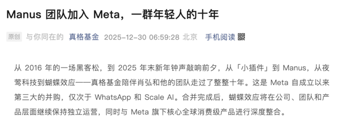 一大早起来被Manus的消息刷屏了,Meta“收购”了Manus。