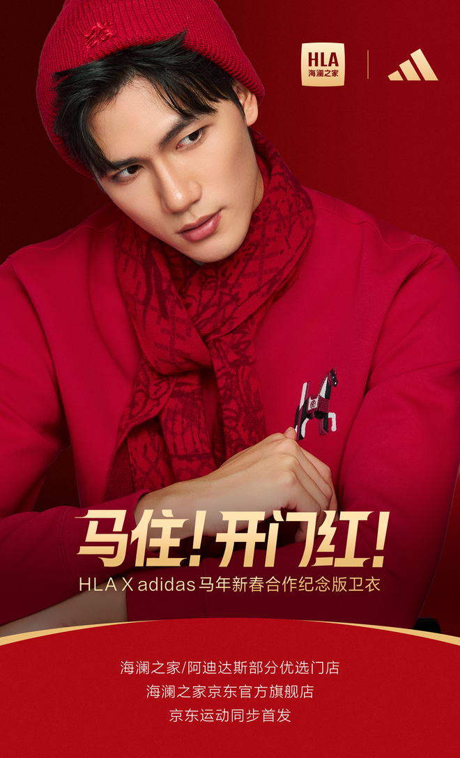 在刚刚举办的发布会中,海澜之家宣布与adidas正式推出以农历马年为主题的HLA x adidas合作纪念版卫衣,其实就传递了一个特殊的信号:产品由“特供”过渡到了“合作纪念版”,由一方单独投入产品转为双方共同投入设计、营销资源,这也意味着双方团队开始走向创意前端的融合。