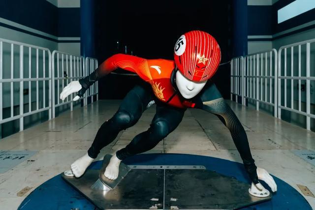 安踏服配专业装备产品总监杨媚清表示,针对运动员在直道全力冲刺与弯道高速过弯的不同姿态,安踏制订了不同的减阻计划,从面料表面微结构优化,到基于滑行姿态下肌肉线条的流体分割线结构设计,全面减少空气湍流扰动。