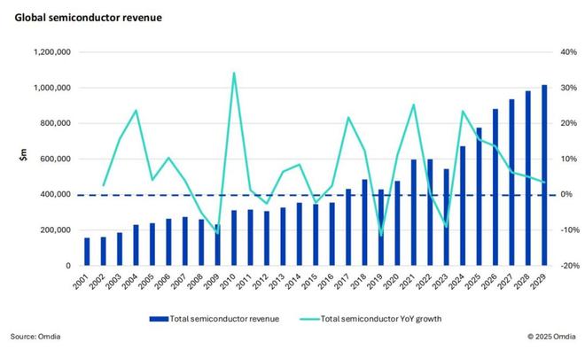 Omdia表示,2025年,中国半导体市场预计将实现显著增长,市场规模达3930亿美元(同比增长16%以上),主要得益于人工智能数据中心的投资推动。