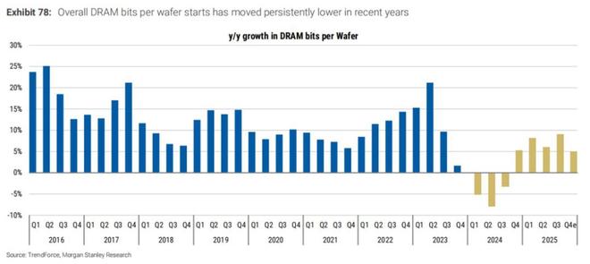 总体来说,大摩表示,尽管NAND芯片价格有所回升,但DRAM的利润率仍显著更高。鉴于HBMIs对晶圆起始需求的额外增加,认为投资将持续流向回报率更高的领域——DRAM领域始终是这一趋势的首选。