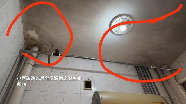 贺女士说,人家的房子是越改越好,她的房子却被改得住不成人,“2022年8月回去取东西时,发现地上全是积水,还以为水管爆了,看完整个房子,发现是顶上漏雨的问题。贺女士说,经查看,北墙被雨水渗泡的墙皮脱落,有些地方经雨水冲刷浸泡没了墙皮,内里的水泥都露出来了,厕所漏得最严重,全屋大小漏雨有13处……