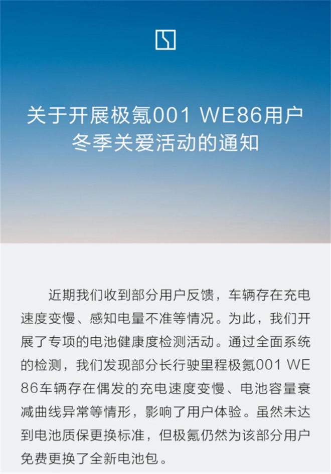 然而,2024年12月,极氪的电池问题开始爆发,因为电池充电变慢、电池衰减异常遭到大量用户投诉,极氪不得不在12月针对极氪001 WE 86车型发起“冬季关爱活动”,为出现异常问题的用户免费更换电池包。据测算,涉案车辆大约为4到5万辆,单车综合成本在5至6万元,极氪为更换电池付出了20至24亿元的费用。