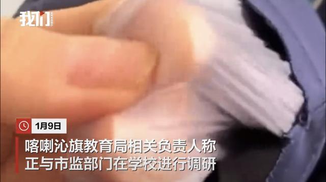 1月9日,喀喇沁旗教育局相关负责人称,正与市监部门在学校进行调研。视频显示的是冬季校服,这层膜叫覆膜面料,有质检报告,这种膜可能是保暖用的,正进一步调查此事。