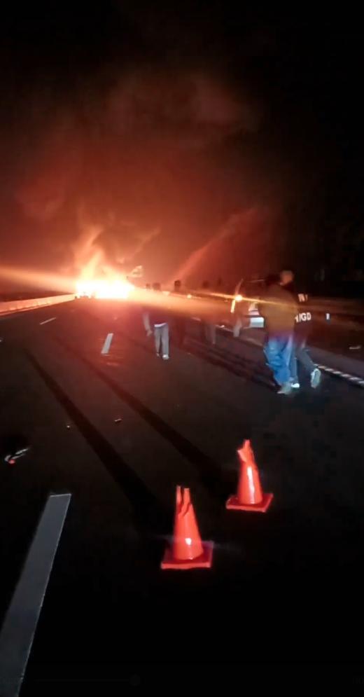 湖南高速烟花车追尾侧翻起火,2人轻微伤
