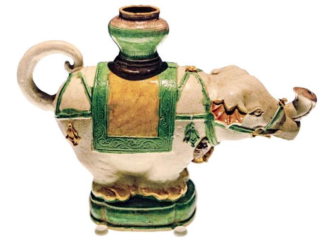 南海西北陆坡一号沉船遗址出水的明代“素三彩象形执壶” 图/中新