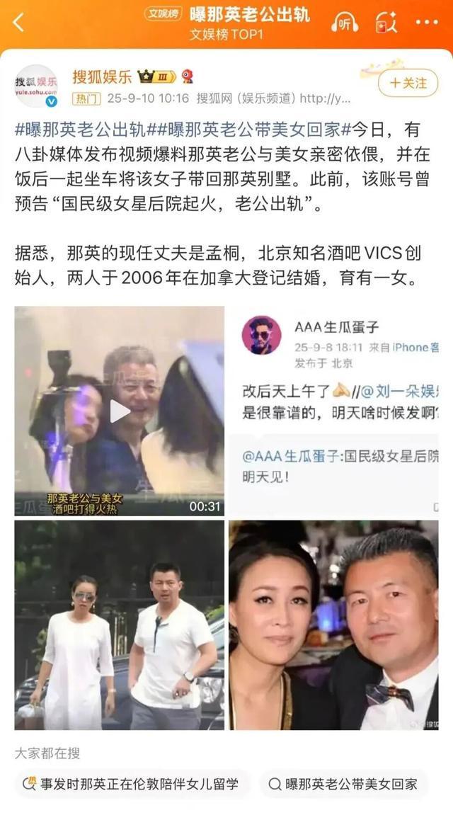 关于那英老公被曝出轨的传闻,近期引起了广泛关注,据悉,那英的丈夫被指涉嫌不忠行为,这一消息引发了公众对其婚姻状况的猜测和关注,双方尚未对此事做出正式回应,这一事件仍待进一步观察和报道。