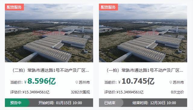 同样的资产在2025年12月30日已经进行了第一次拍卖,当时起拍价约10.75亿元,最终流拍。2026年1月15日10点进行二拍,起拍价下调至约8.6亿元。