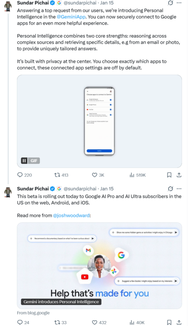 Personal Intelligence功能的推出,让这些数据首次被深度整合到AI体验中。
