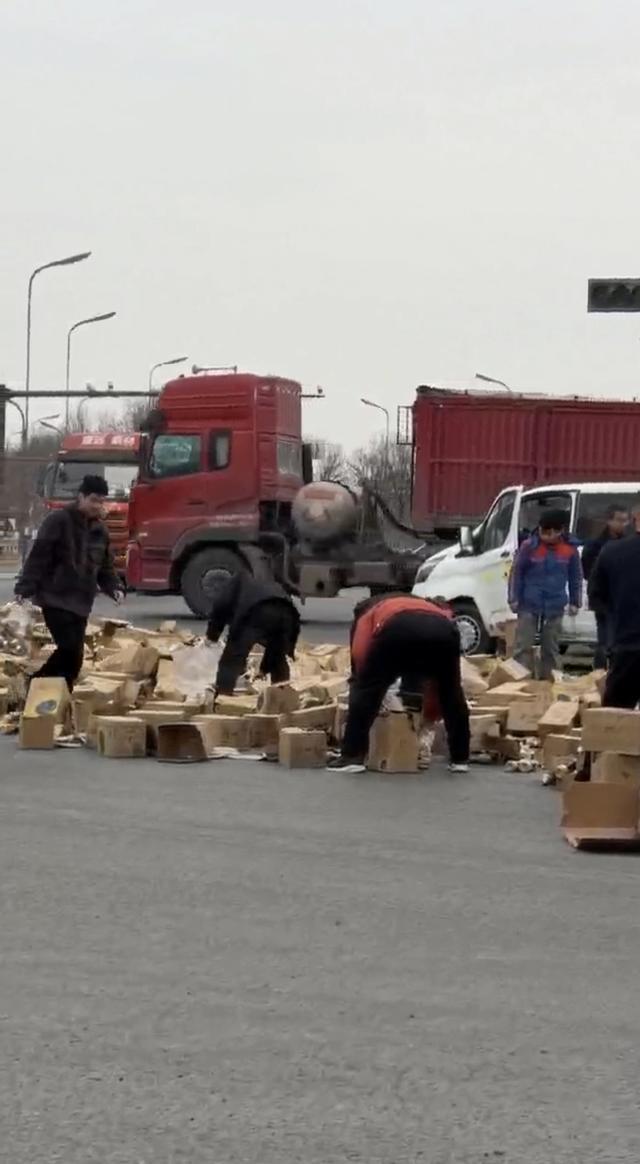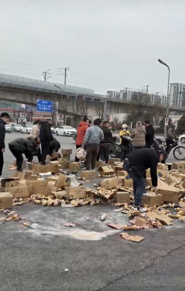 抖音博主“我是小潘潘”向记者还原了现场经过:当天他们一行5人驾车前往西安,行至事发路段时遭遇拥堵,起初以为是交通事故。“走近才发现,一辆大卡车的后围挡翻了,满地都是奶茶箱,好多人围在那里,一开始还以为是在哄抢。”博主回忆,直到靠近后才看清,大家都是在帮司机捡拾撒落的奶茶,而且是按2元一瓶的价格自愿购买,目的是帮司机挽回损失。