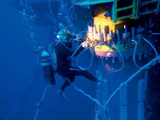 2025年5月,蛙人对“深海一号”二期水下结构物进行检查。6月25日,中国海油宣布,公司在南海水域的“深海一号”大气田二期项目全面投产,标志着中国最大海上气田建成。图/中国海油供