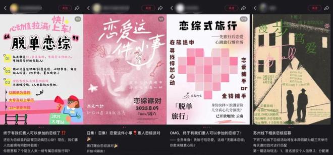 更值得关注的是,随着线上恋综收割大笔线上流量,线下也逐渐涌现出诸多借鉴“恋综模式”的社交活动。有的活动策划者会以“这一次,来当自己爱情故事的主角”等极具代入感的话语,激发年轻人的参与意愿,推动他们从屏幕前的“观恋者”转变为现实中的“寻爱者”。