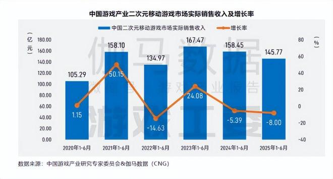 根据2025年产业报告,上半年二游移动游戏市场实际销售收入同比下降8%,继续延续此前二游大盘下滑的趋势。