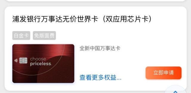 浦发名下的万事达“无价世界卡”。图源:官网截图