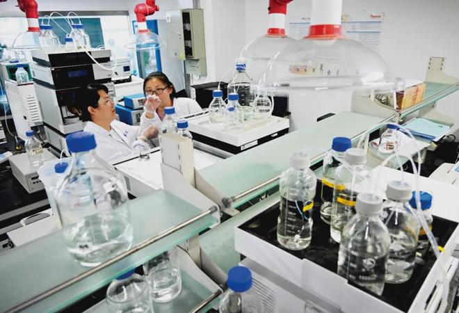 2024年6月7日,青岛海洋生物医药研究院研究人员在实验室进行研发测试。图/新华