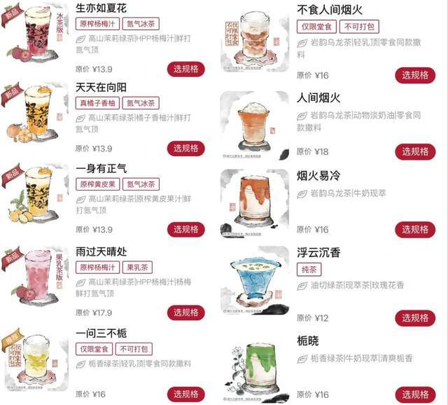 喝了就开心,成为人们买现制饮品的主要原因。而一款风雅、特别的产品名,无疑是重要的情绪价值来源。
