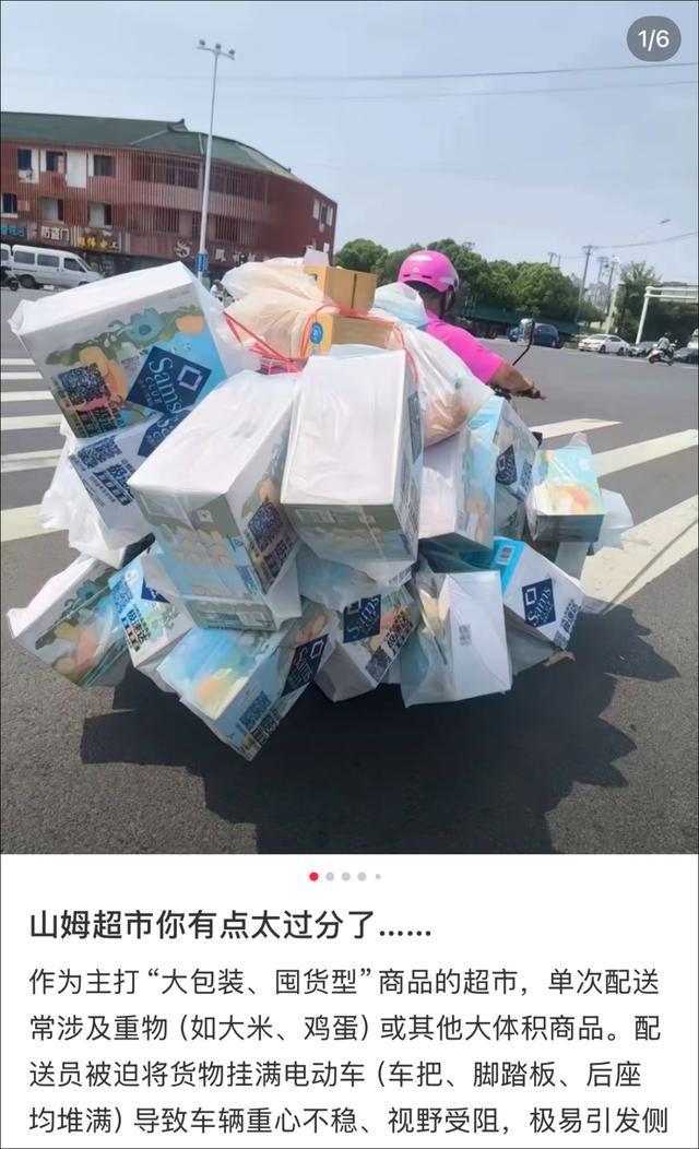 有网友在社交平台发帖称,“山姆超市你太过分了”。图片显示,配送小哥所载商品货量较大,电动车前后均挂满了包裹。