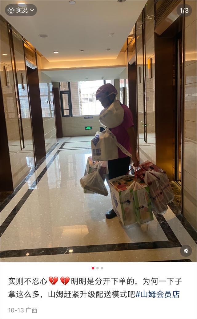 也有网友呼吁,“实在不忍心,怎么一下子拿这么多,山姆赶紧升级配送模式吧!”