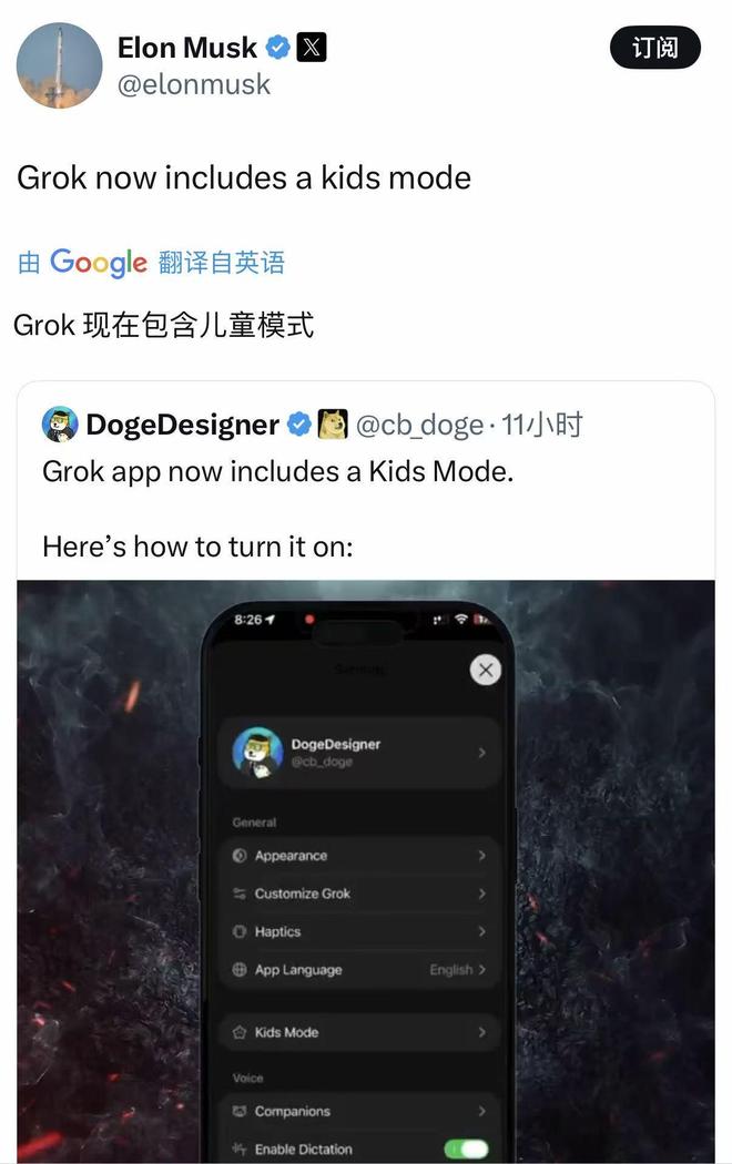 马斯克宣布,全新儿童模式上线,xAI Grok守护孩子成长旅程