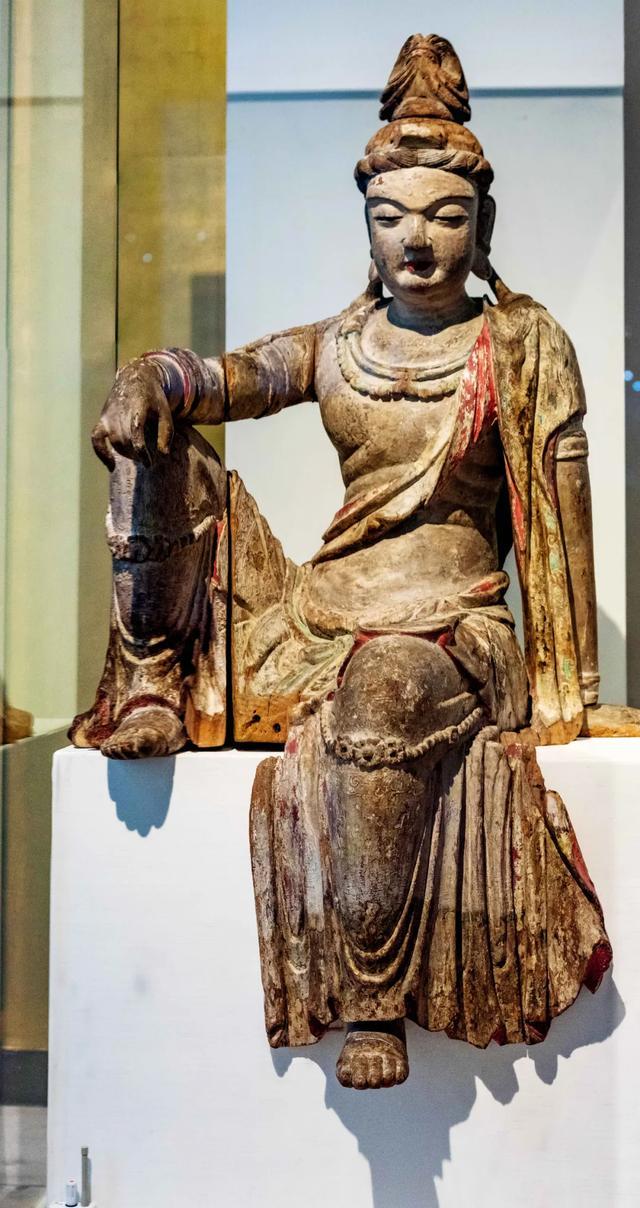 2019年8月3日,陈列于英国伦敦大英博物馆的中国宋代木雕观音。 图/视觉中国