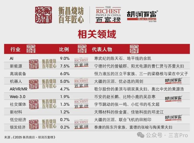 上榜企业家领域:AI占比9%新能源7.5%