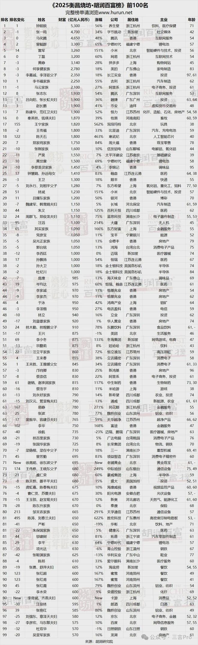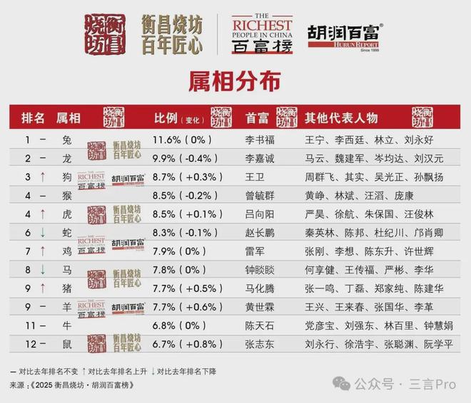 胡润百富榜看点,属兔人多,卖水行业最赚钱