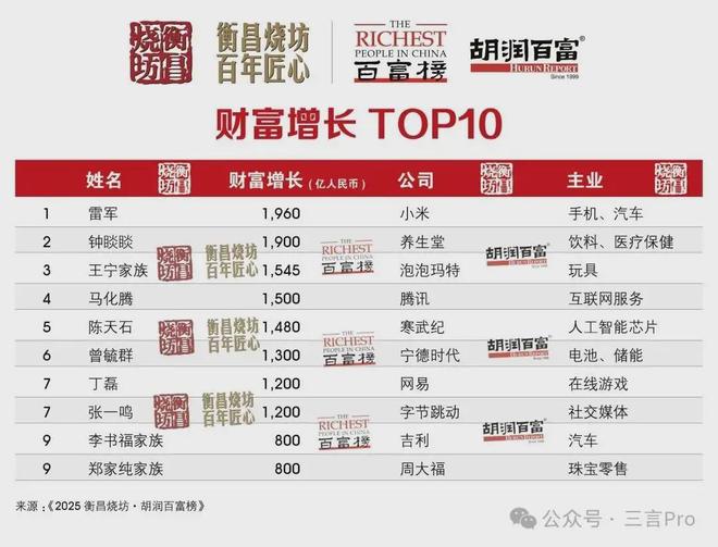 前十名迎来新面孔钟睒睒第四次成为中国首富雷军闯进第五