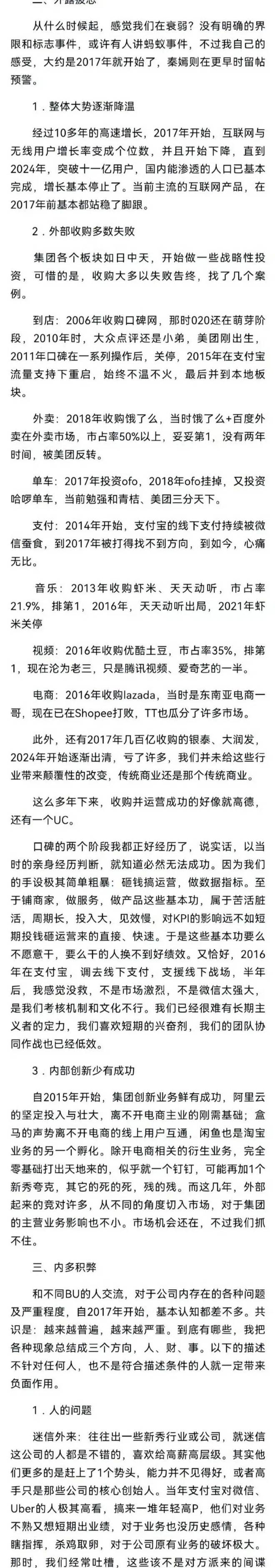 《中国企业家》记录过一个前钉钉中台员工眼中钉钉的变化: