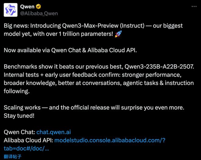 昨天Anthropic刚玩了一手“极端措施”,阿里深夜一波大的直接反手一记重拳——推出其史上最大的模型,Qwen3-Max-Preview,参数量足足超1万亿!