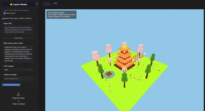在实际效果方面,已经有不少国内外的网友们展开了实测;例如X上的知名博主AK,他就在HuggingFace集成了Qwen3-Max-Preview的项目AnyCoder中,输入了这样的Prompt: