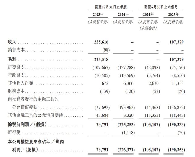 招股书显示,2023年-2025年上半年,该公司实现营收分别为2.26亿元、0元、1.07亿元,期内利润分别为7379万元、-2.26亿元、-1.9亿。但从中也可以发现,尽管没有商业化产品,高光制药仍有现金入账,而这主要系一笔重大的商业合作。