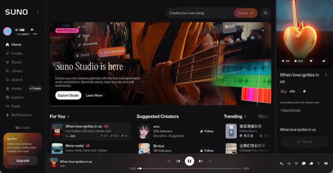 从内容生产的角度来看,各种AI模型和AI工具的涌现,已经将AI音乐推进了“全栈升级”阶段,AI音乐产业的发展方向,也从单一功能的工具进化为“一站式创作平台”。
