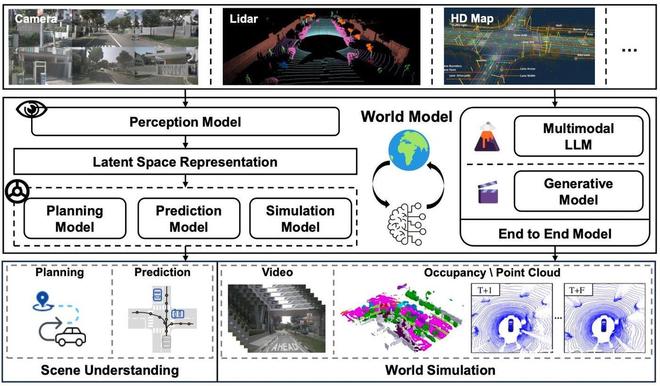 该路线认为,自动驾驶系统要像人类驾驶员一样,先在“大脑”中构建出周围环境的数字化虚拟模型,再基于这个模型模拟不同驾驶策略的潜在结果,最终筛选出最优方案。它强调AI需先理解世界的运行规律,再结合传统自动驾驶模块完成决策,将大模型的认知能力与成熟的工程控制方案结合,规避纯算法决策的幻觉风险。