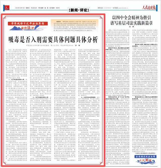 据《人民法院报》12月11日报道,近期,有关“吸毒是否入刑”引发社会热议,成为法治研究的新课题,为此,本栏目特邀中国政法大学刑事司法学院教授、博士生导师、刑法学研究所所长罗翔撰写署名文章。