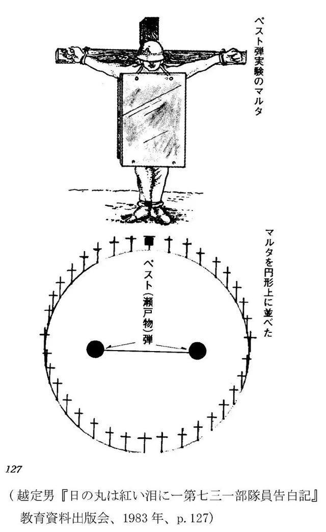 西岛鹤雄:“飞机的弹仓里装满了细菌培养液,然后像下雨一样洒下去,让被绑在柱子上的‘马路大’抬头张嘴接着。他们这些人心里很清楚,吸入这些东西肯定活不成,所以都闭着眼睛,憋着气不想呼吸。但这样实验就没法进行了呀,所以得一人一把手枪逼着,让他们张嘴抬头,硬是让他们这样。”