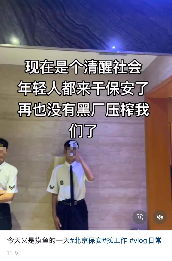 结合上面那些种草的视频,再加上人们的刻板印象,便让一些在校生或者毕业生坚定地认为,当保安只需要坐一天,玩一天手机就行了。