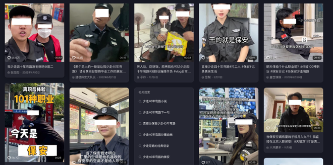 这可不是说说而已。现在只要随手打开短视频App就能看见满屏的年轻保安。