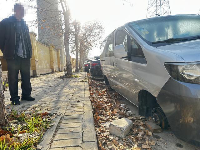 近日,在西安市灞桥区祥云路保利熙岸林语小区南门口,一条东西方向的路上,多辆车车轮被偷。有的车主因长期将车停放在此,直到派出所民警打电话才知道此事。