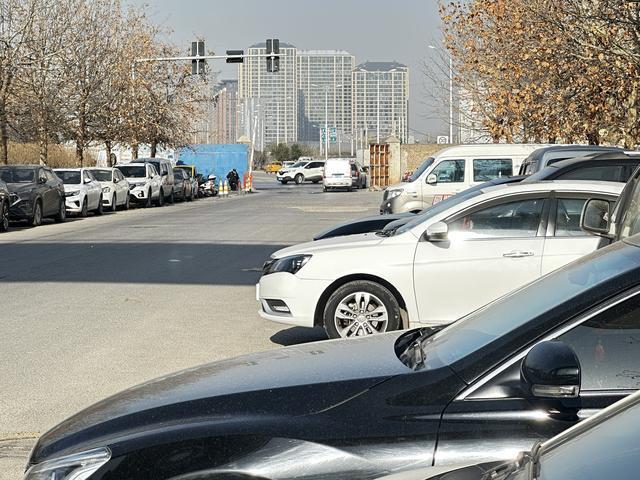 保安说,这是条“断头路”,没有路名,也不收停车费,交警也不来,常年有车停放在路两边,保安岗亭只负责拦截渣土车闯进去乱倒建筑垃圾,车辆安全他们不负责。