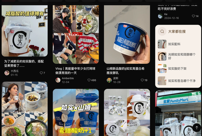 一个经典的案例是,光明乳业近期在山姆上线了一款如实高蛋白希腊发酵乳,凭借配料表干净(只有生牛乳和发酵菌)、口感浓醇等优点,该产品在上架后得到了消费者的一致认可,在社交平台自发形成了自来水,此后,该产品迅速被中产家庭推上神坛,跻身进许多人的山姆必买红榜。