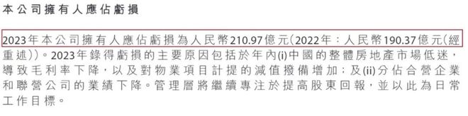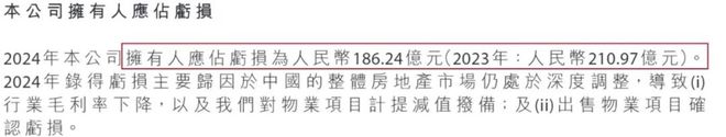 对于远洋集团来说,利润并不是可有可无的存在,因为企业已经连亏三年。2022年至2024年,远洋集团的股东应占亏损为190亿元、211亿元及186亿元,累计亏损约587亿元。