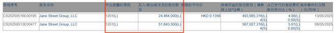 港交所披露资料显示,2025年5月8日、13日,股东Jane Street Group,LLC分别减持了5164.35万股、2446.4万股远洋集团的股票。