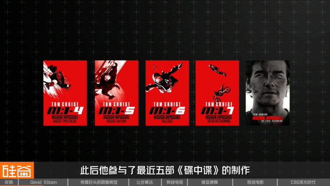 之后David瞄准了派拉蒙的特许经营系列,当《碟中谍3》票房仅3.98亿美元、Tom Cruise看似过气时,David为这个系列担保,投资3.5亿美元制作了《碟中谍4:幽灵协议》,最终斩获6.95亿美元票房,让整个系列重获新生。此后他参与了最近五部《碟中谍》的制作。